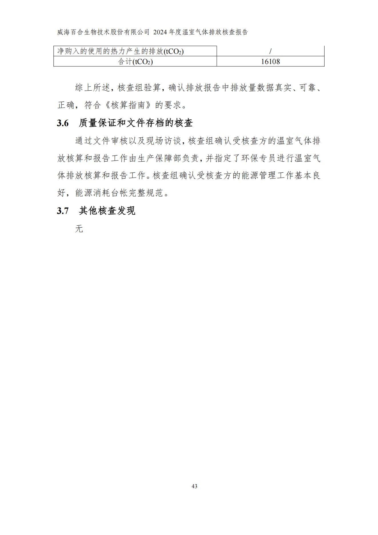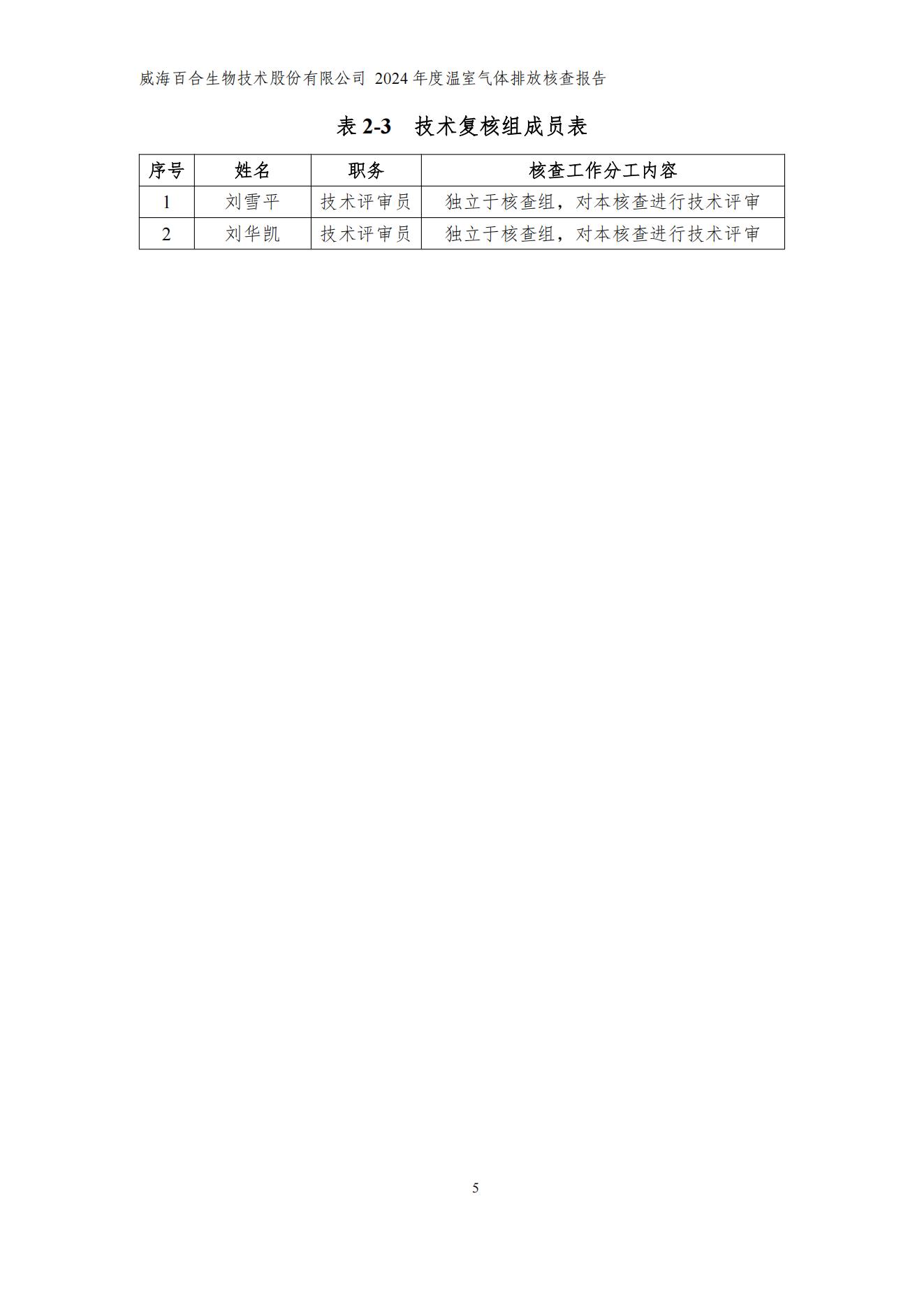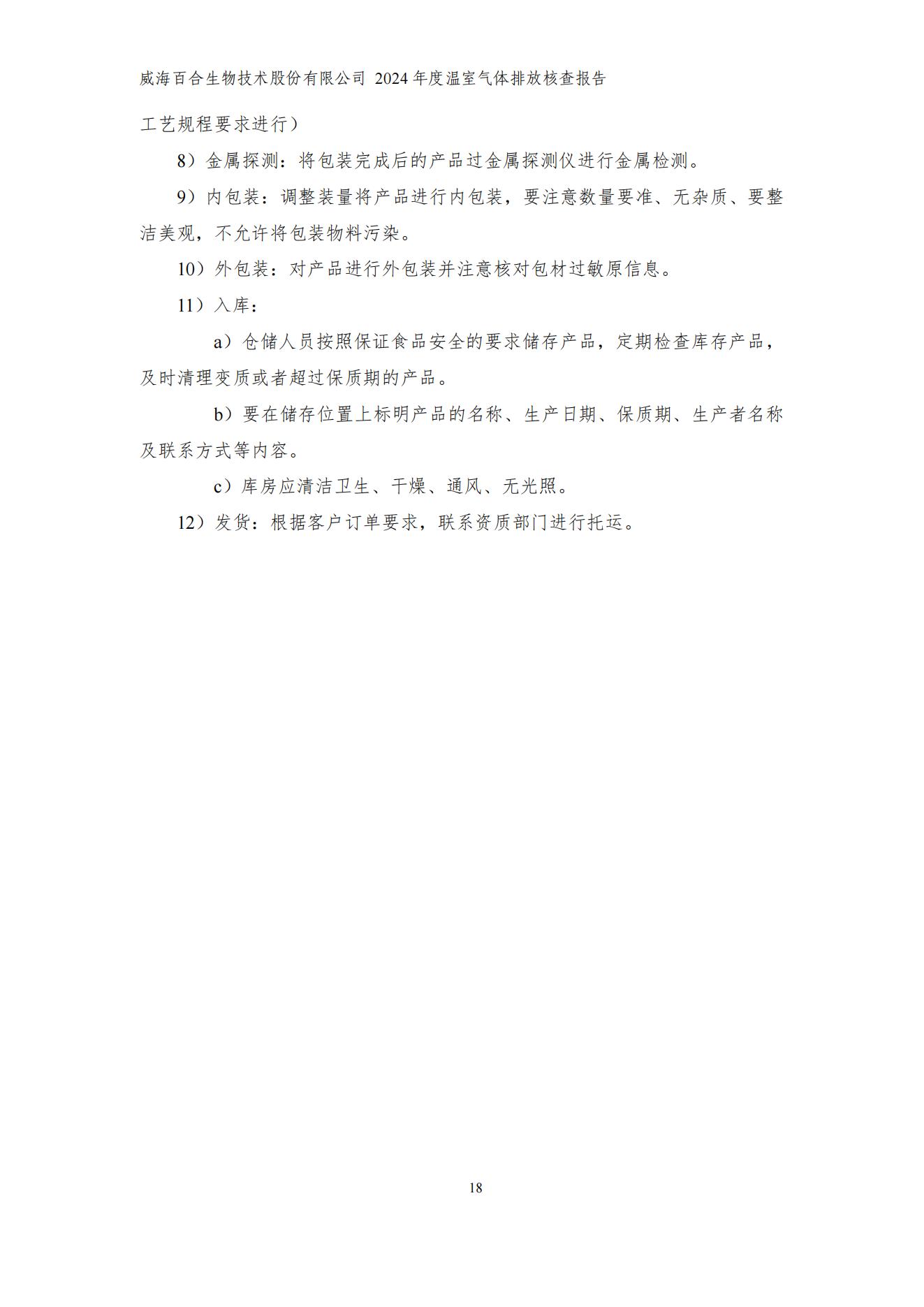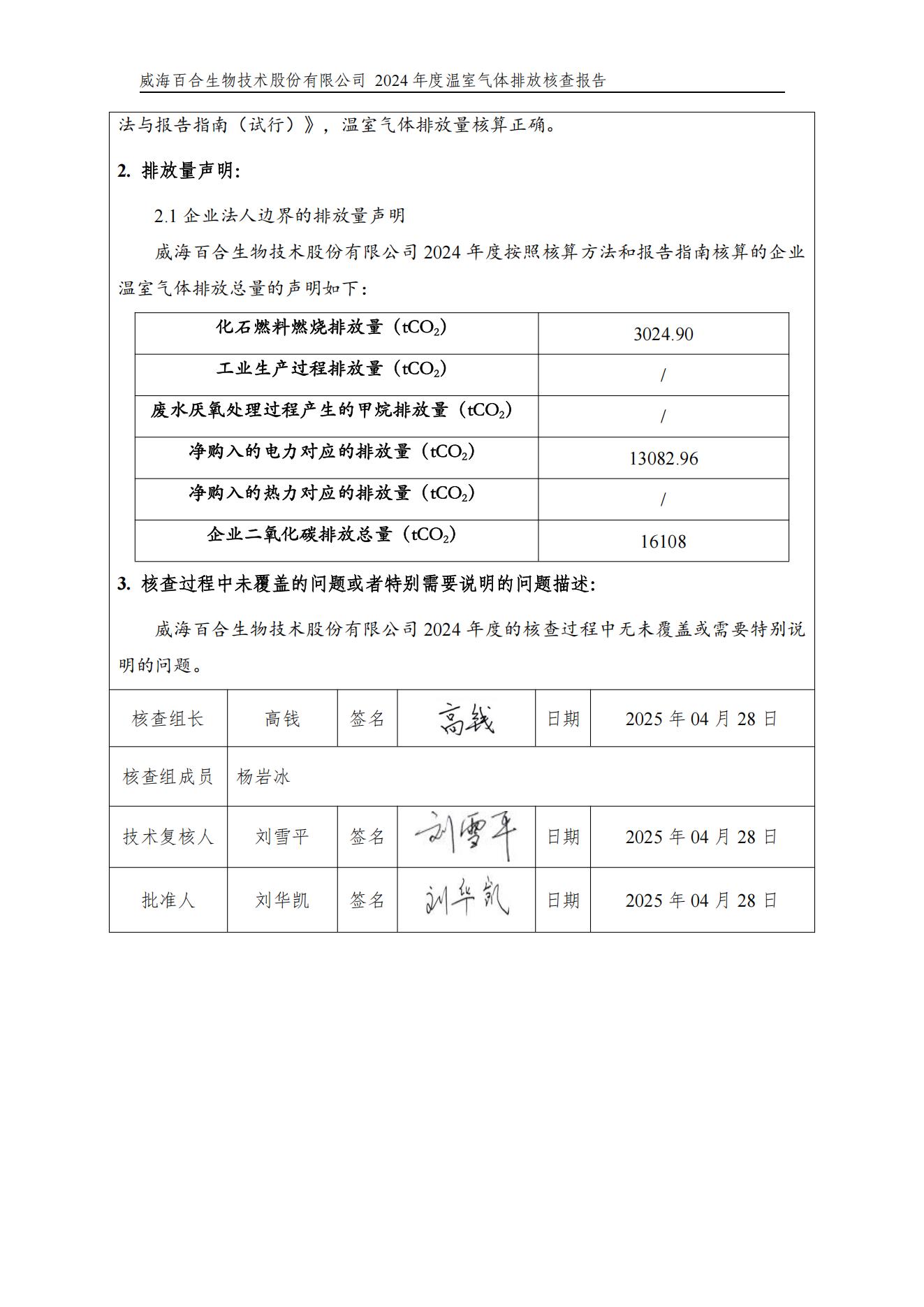 威海百合生物技術(shù)股份有限公司2024年度溫室氣體排放核查報(bào)告