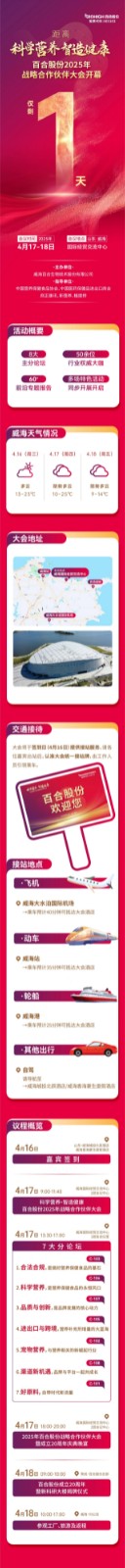 倒計時1天!【科學(xué)營養(yǎng)· 智造健康】——百合股份2025年戰(zhàn)略合作伙伴大會行程攻略